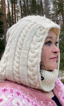 Viime syksyn ja loppuvuoden ehdoton suosikki oli huppukauluri, balaclava tai miksi itse kukin sitä tahtookaan nimittää. Myös minä tahdoin itelle sellaisen. Mulla on aina ollut tosi paksut, luonnonkiharat hiukset ja pipon kanssa ne jää aina ihan lättänäksi. Tämä oli todellinen pelastus, ei mene hiukset lättään ja ne mahtuu hyvin tuonne huppuun ja onhan tämä myös kaunis. Langaksi myös tähän työhön valitsin Dropsin Nepalin, koska se on niin ihanan pehmeä lanka ja siinä palmikot erottuu kauniisti.